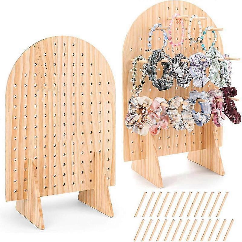 2 Pack Wooden Pegboard Display Stand with 25 Pcs Wood Dowel Rods, Oval Pegboard Stand for Jewelry,Pe
