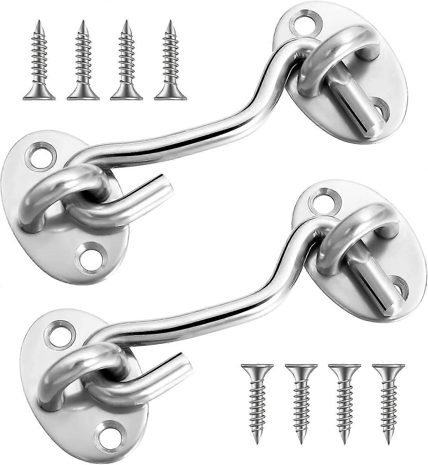 2 Pack Cabin Hook And Eye Latch Lock, 3 Inch Stainless Steel Privacy Gate Cabinet Latches, Heavy Duty Swivel Latch Lock With Mounting Screws