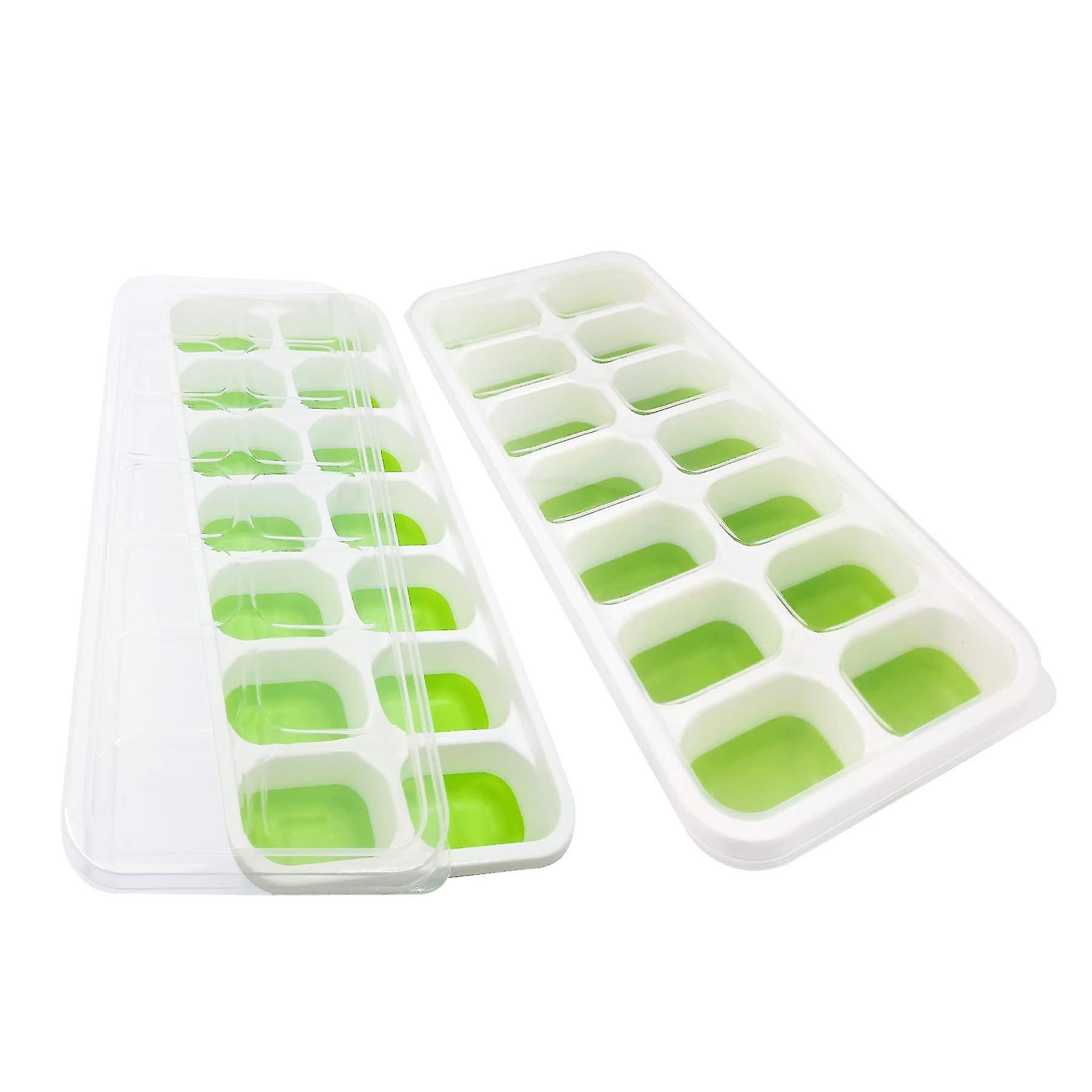 2 Pack Ice Cube Trays,flexible Easy-release Silicone 14 Ice Trays With Spill-resistant Removable Lid