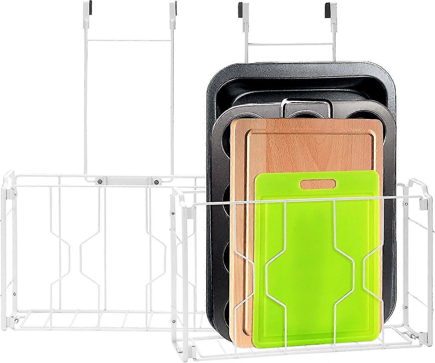 2 Pack- Over The Door/wall Mount Cabinet Door Organizer Holder In Kitchen Or Pantry For Cutting Board, Aluminum Foil, Cleaning Supplies, White