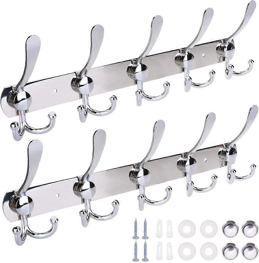 2 Pack 5 Hooks Clothes Hooks Stainless Steel Wall Hooks Coat Rack Towel Rail Waterproof 30 kg Heavy