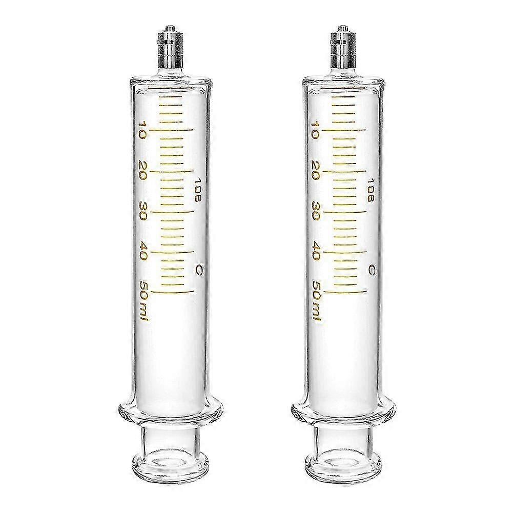 2 Pack Luer Lock Reusable Glass Syringe with No Needle, 50Ml