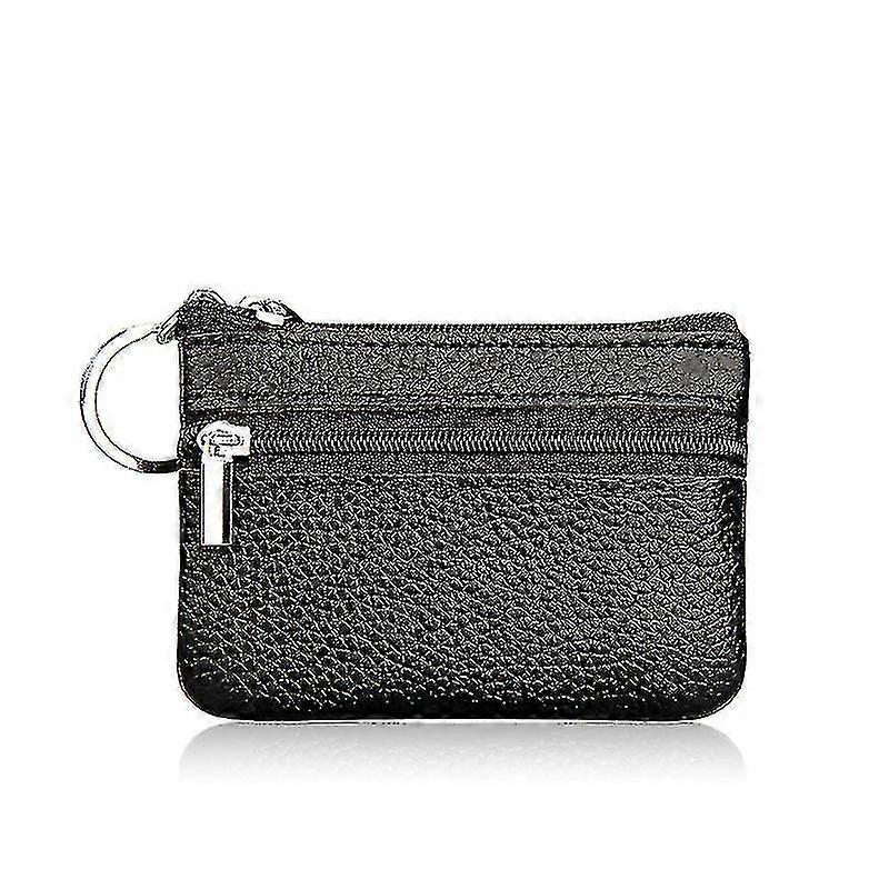 2 Layers Unisex Women Men Leather Zipper Coin Card Key Pouch Small Mini Wallet Purse