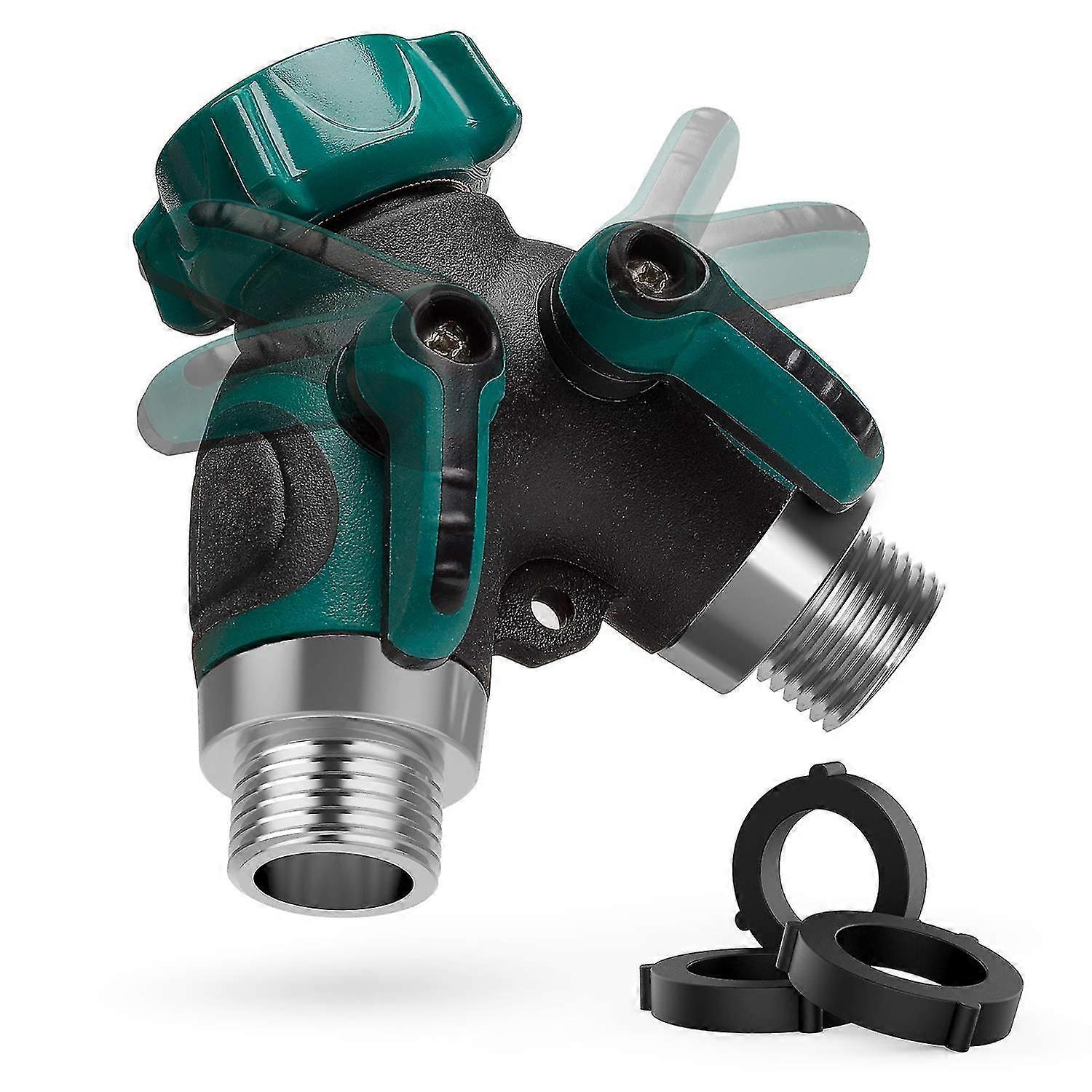 [2 WAY HOSE SPLITTER] Do you need more outdoor spigots to water gardens, wash tools, or have backyard water games? The Y shape hose connector is an easy and quick solution for you. The hose splitter expands your single spigot to two individually lever-controlled spouts with a simple attachment. [COMPATIBILITY AND EASY INSTALLATION] The size of the 2 way hose splitter is inch, which fits most standard outdoor spigots and hoses. Simply hook up the splitter to a spigot and tighten the easy-grip connector with your hands, no tools required. Awasher is included in the connector to prevent leaking. [FLOW CONTROL LEVERS] Each water output is controlled by a lever, allowing you to easily turn the water on/off and adjust the flow. The long, rubber-coated levers are comfortable to grip and easy to turn. [QUALITY MATERIALS AND SOLID CONSTRUCTION] The 2 way hose splitter is made of a sturdy zinc alloy, which is able to withstand high water pressure. The metal body is covered with TPR rubber, making the faucet splitter weather-resistant and rust-resistant.