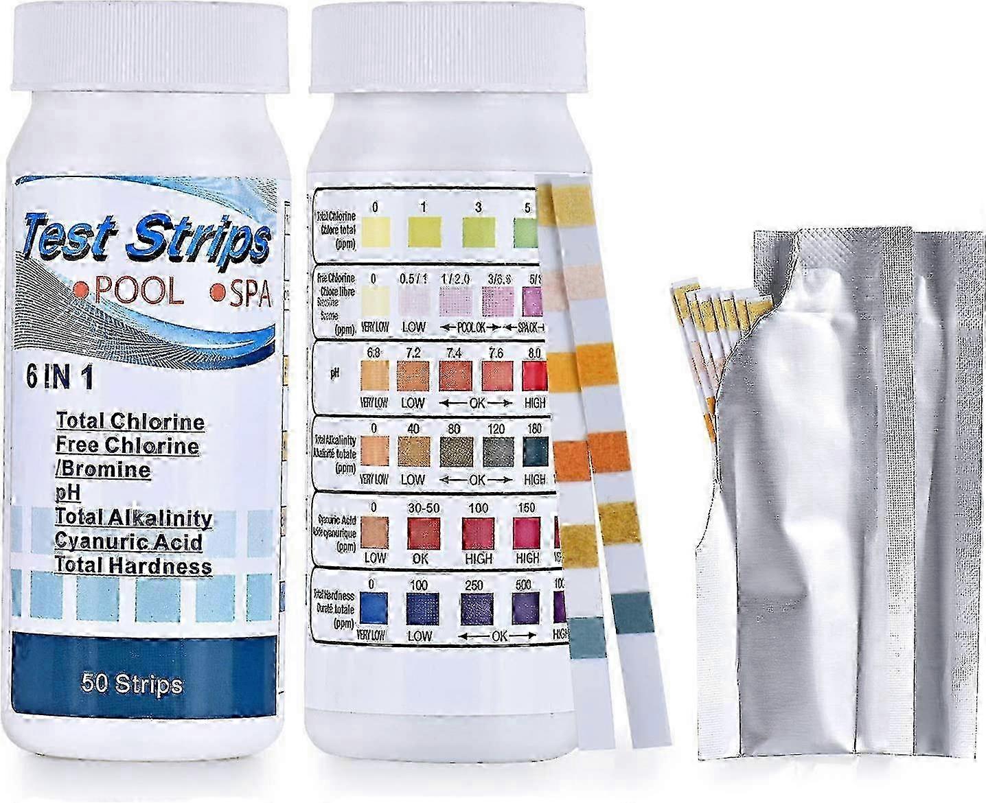 2 Pack Pool Spa Test Strips - 6-in-1 Testing for Chlorine, pH, Alkalinity, Cyanuric Acid, and Hardness - 100 Pcs