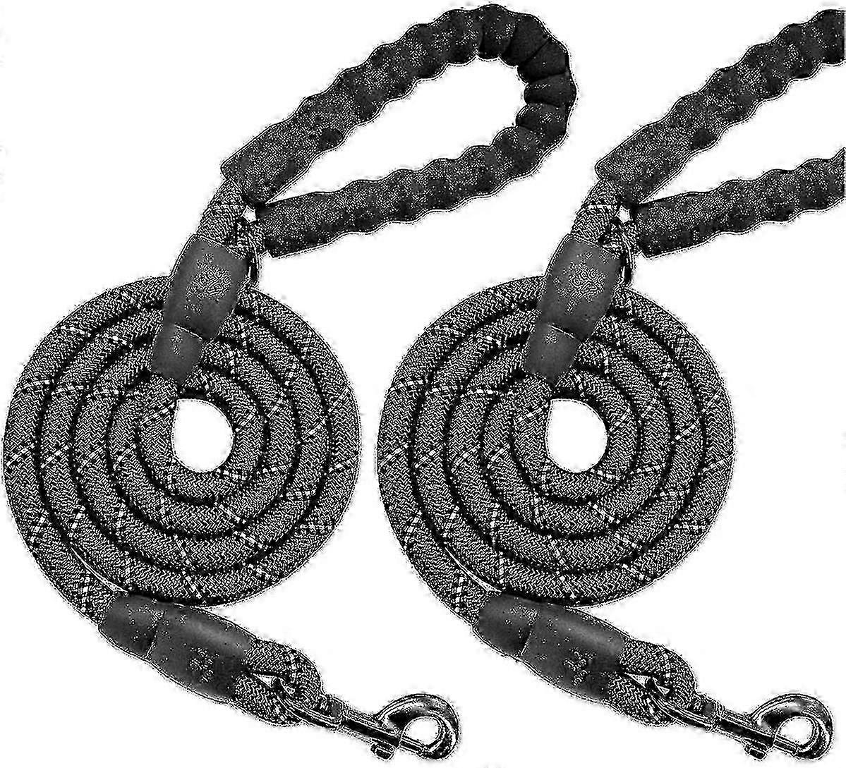 2 Pack Heavy Duty Dog Leashes for Large Dogs with Padded Handle & Reflective Threads (5ft, Black)