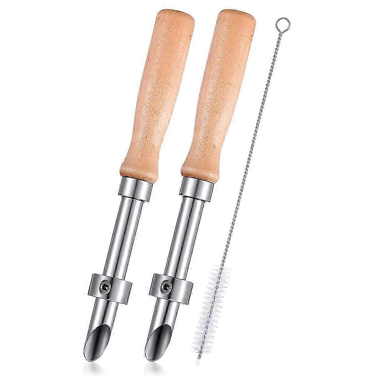 2 Pack Straw Puncher suitable for Plastic Lids Lemonade Cup Stainless Steel Straw Hole Puncher with Wooden Handle Punching Tools