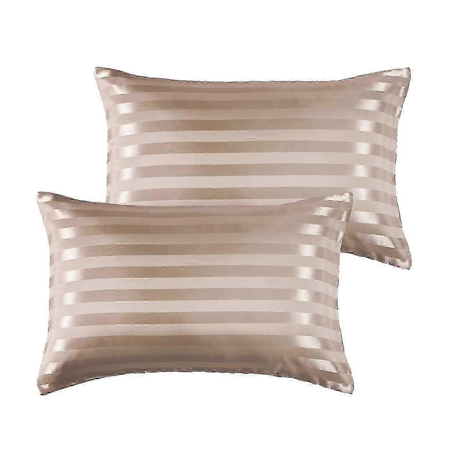 2 Pack Satin Pillowcases, Super Soft Silky Pillow Cases, 50 x 75cm, Champagne-striped