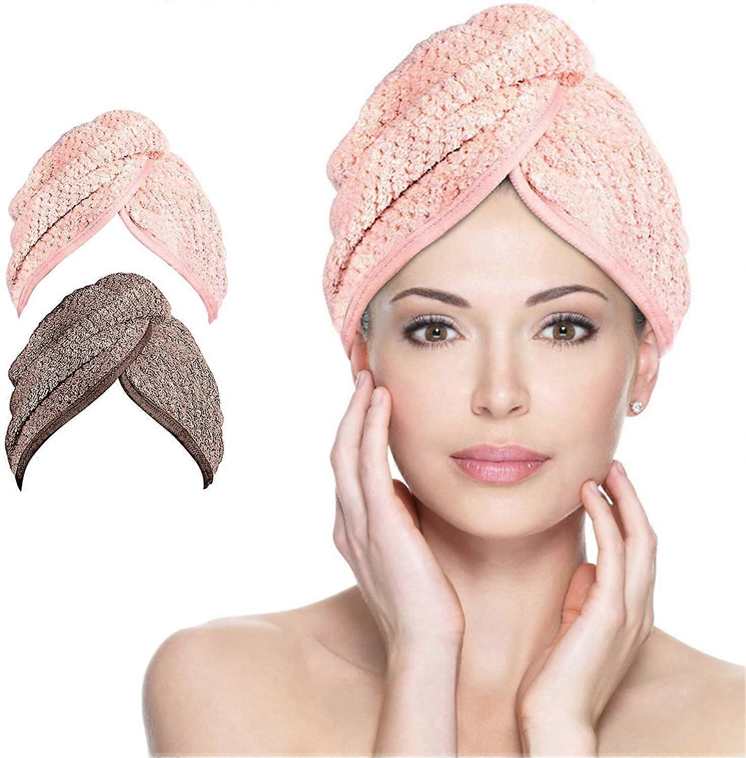 2-Pack Hair Drying Towel Turban Wrap Set - Quick Dry Hair Hat and Bath Hair Cap Combo for Women - Super Absorbent Microfiber Material - Perfect for Lo