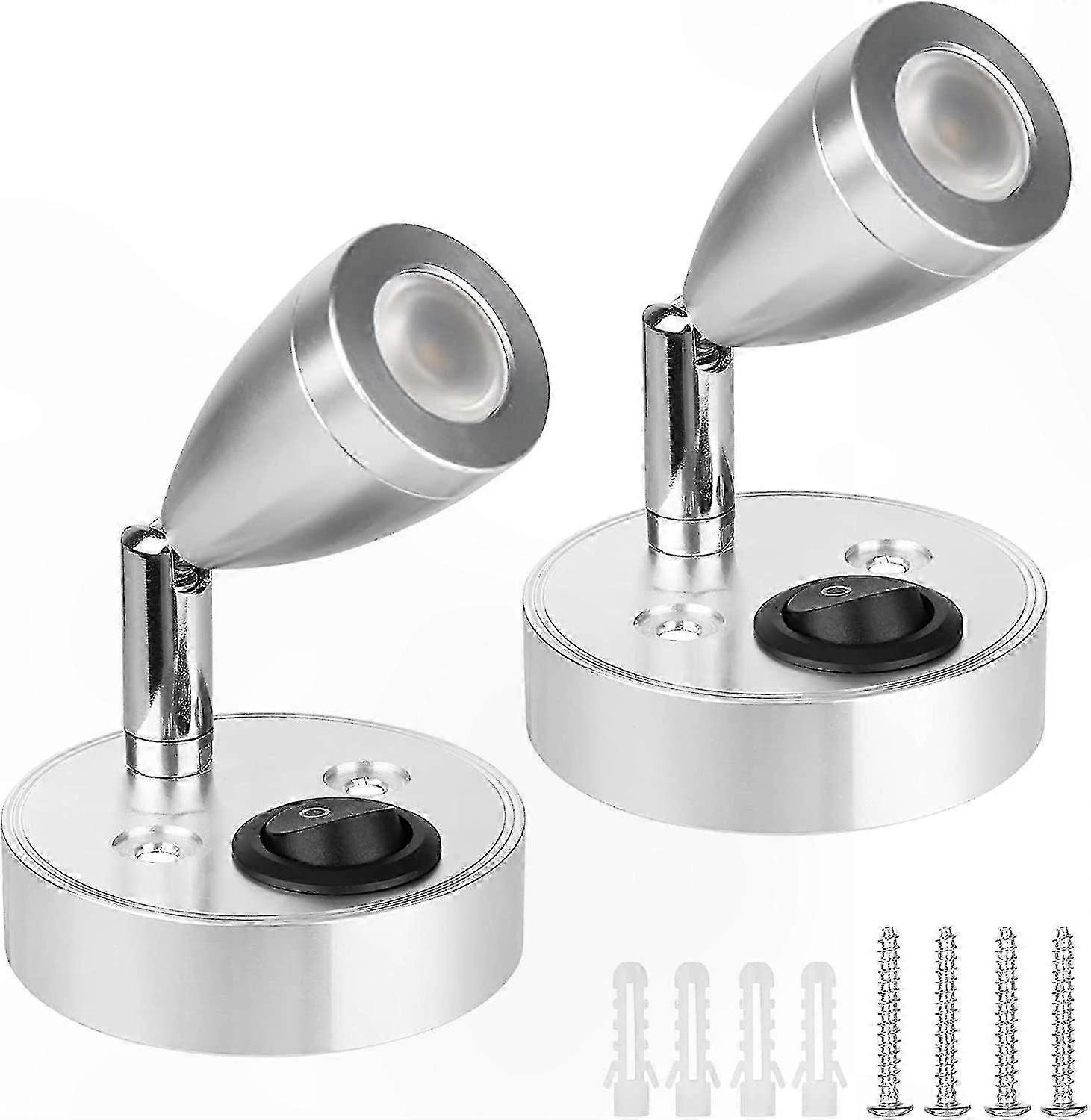 2 Pack 12V LED Reading Spotlights, 3W Warm White 3000K, 180° Rotatable Interior Lamp for RV, Boat, Camper Van Wall Mount
