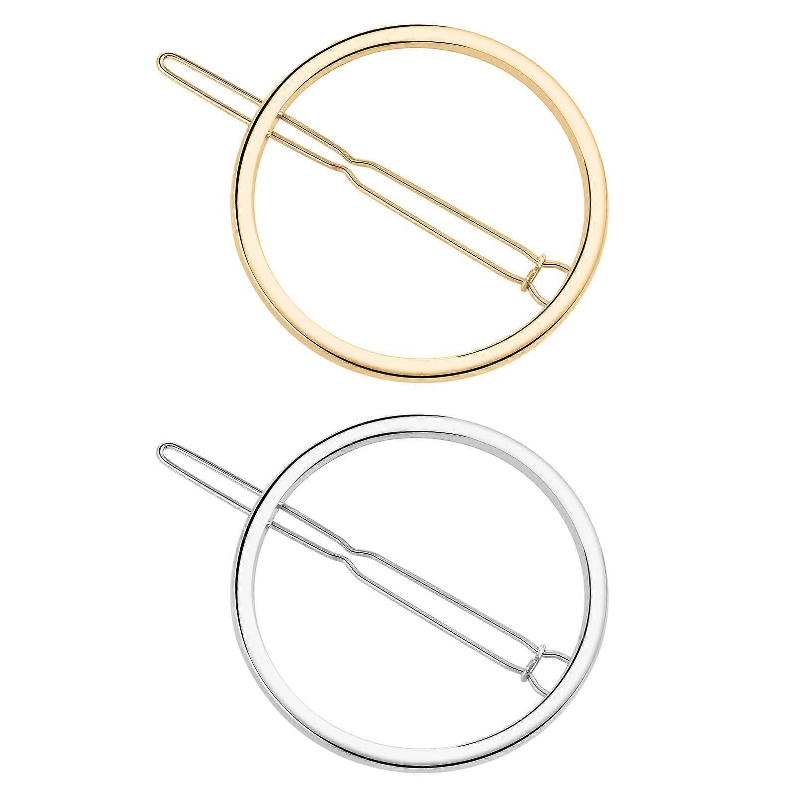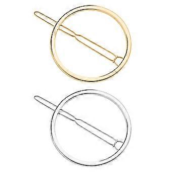 2 Pcs Creative Metal Alloy Hair Clips Simple Round Shape Ponytail Clips Headdress for Women Lady Girls