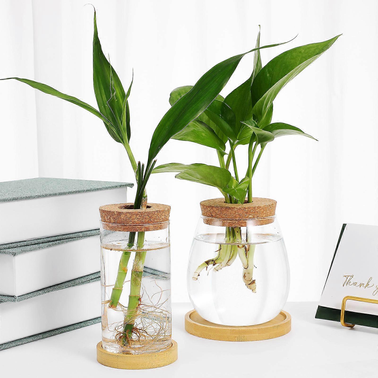 2pcs Plant Propagation Jars Glass Terrariums Cork Lid Planter Glass Vases Hydroponic Planters Glass Plants Pot With Trays