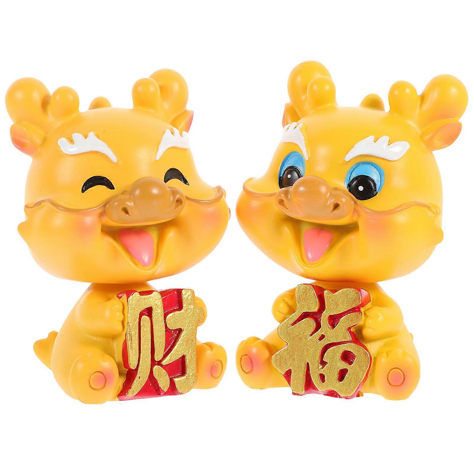 2pcs Resin Mini Dragon Figurines Chinese Zodiac Desktop Ornament Cartoon Style Home Office Decoration Gift