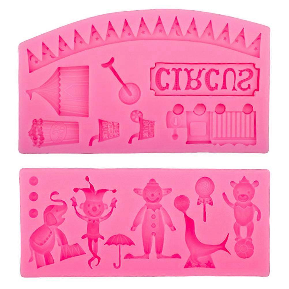 2pcs Circus Themed Cake Molds Silicone Fondant Molds Cartoon Animal Silicone Molds
