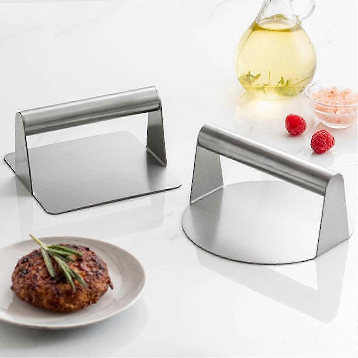 2Pcs Press Burger Smasher Flat Presser Hamburger Patty Maker Stainless Steel Meat Bacon Sandwich To