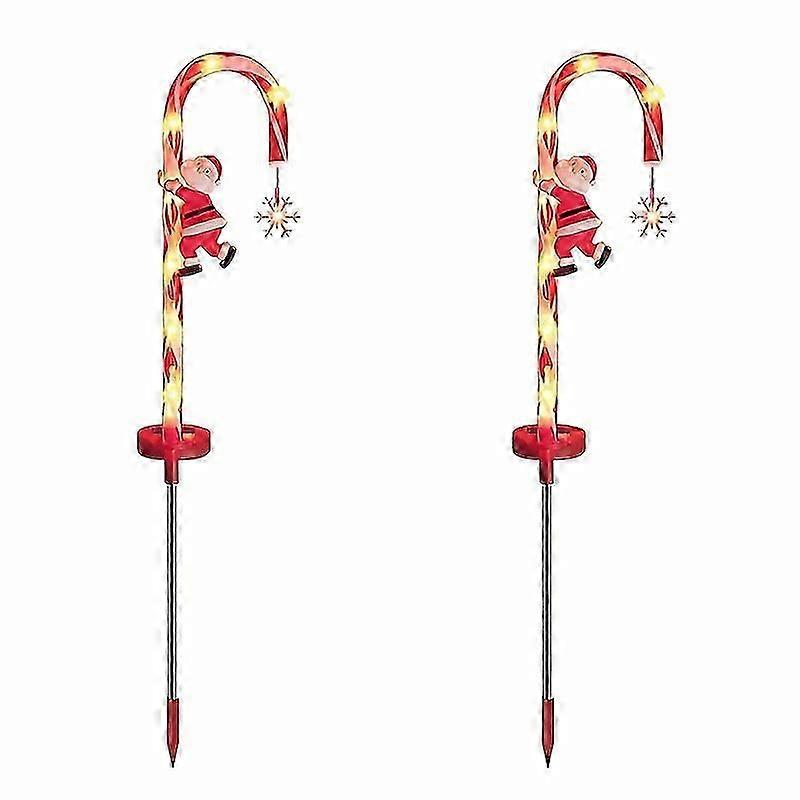 2PC Solar Christmas Decoration Lights Courtyard Garden Festive Atmosphere Santa Claus Cane Light Outdoor Waterproof Lawn Light