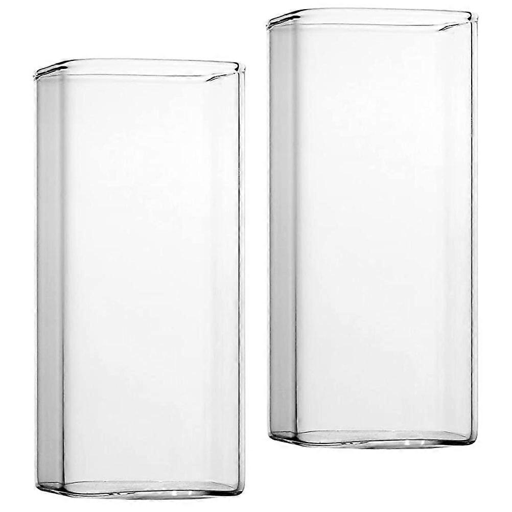 2pcs Square Clear Glass Cups Set for Water, Coffee, Tea, Cocktails Drinkware for Home & Bar Use