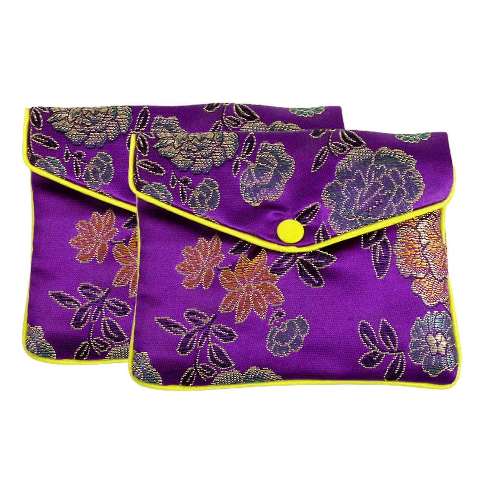 2Pcs Elegant Embroidered Jewelry Pouch Beautiful Bright-colored Fabric Jewelry Organizer for Women