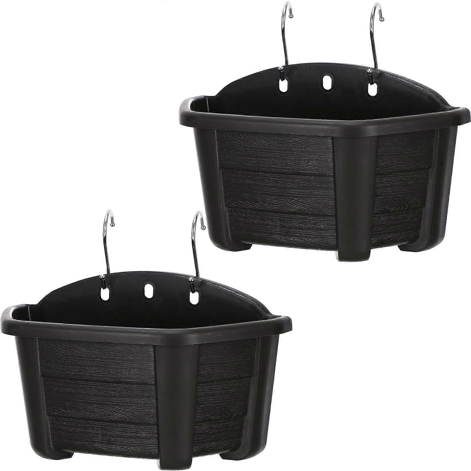 2Pcs Plastic Hanging Flower Pots With Drainage System For Indoor Outdoor Flower Display In Coffee
