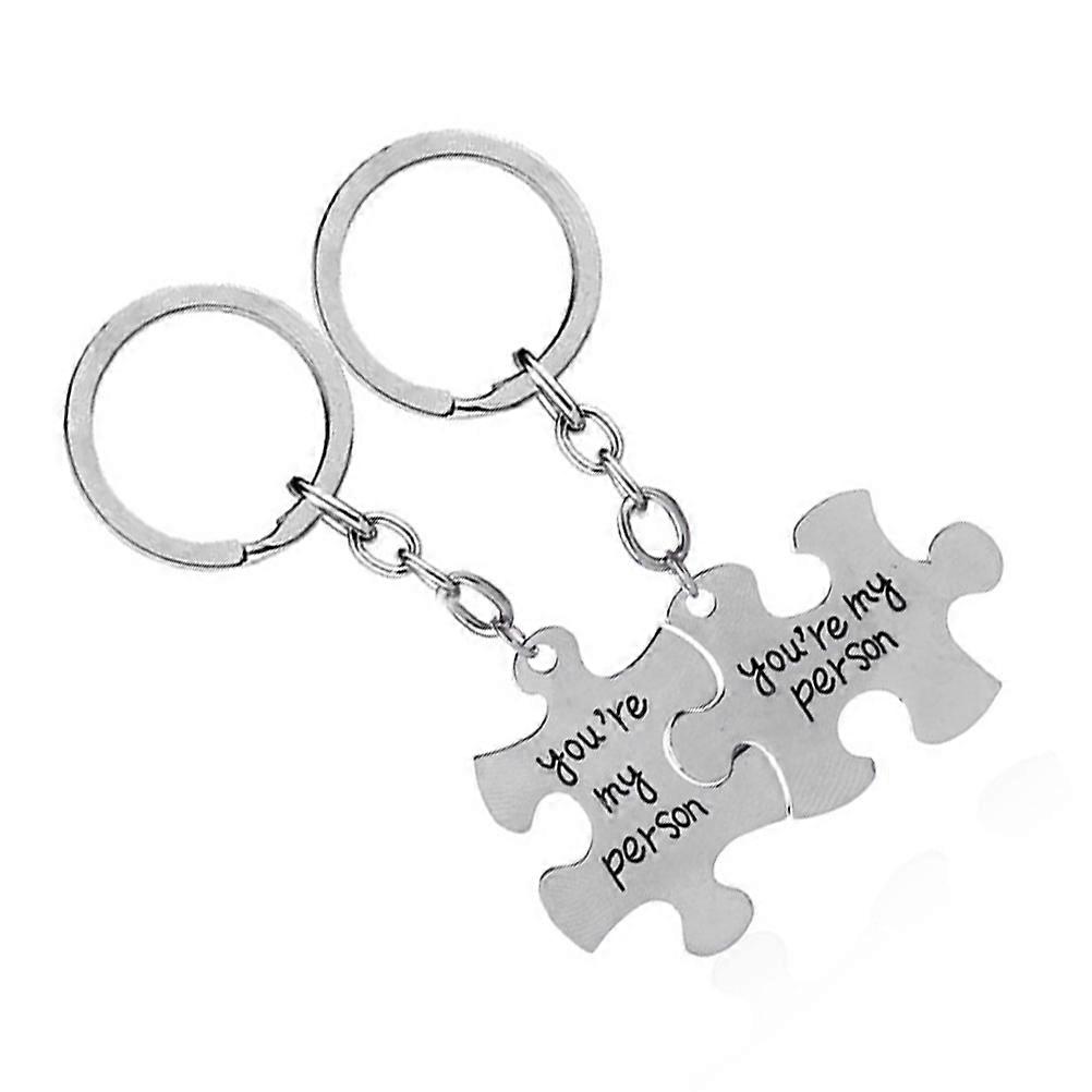 2pcs Jigsaw Keychain Durable Alloy Letter Key Rings Creative Puzzle Design Lightweight Decorative Key Holders for Bags Love Gift Accessories