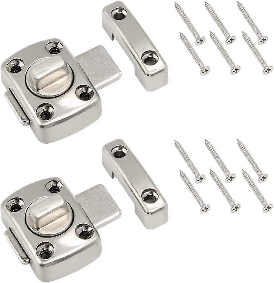 2 Pcs Rotate Gate Latch Security Door Slide Lock Bathroom Latch Rotate Bolt for Toilet Door Windows Hotel Various Doors Cabinet Windows (Silver)