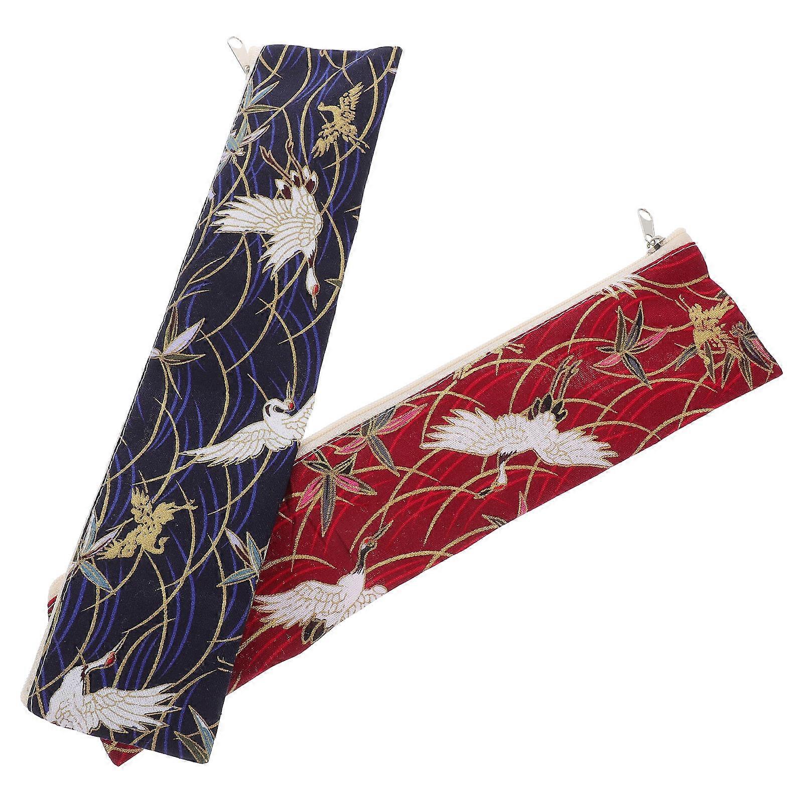 2pcs Japanese Style Chopsticks Bags with Zipper Portable Carry Pouch for Outdoor Camping, BBQ, Travel and School Use