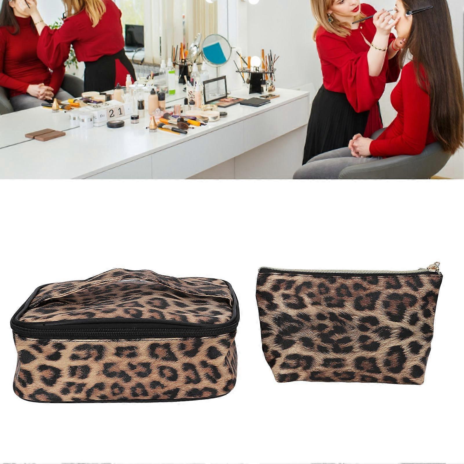 2pcs Leopard Print Makeup Bag Waterproof Multifunction Large Capacity Leopard Cosmetic Bag