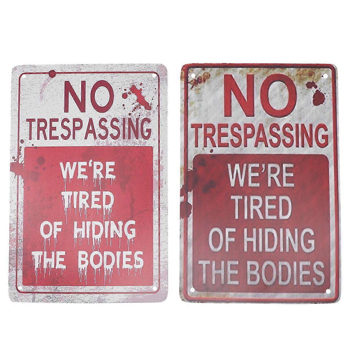 2 Pcs Coffee Bar Decorations Funny No Trespassing Signs Halloween Party Favors Metal Coffee Signs Metal Halloween Wall Decor