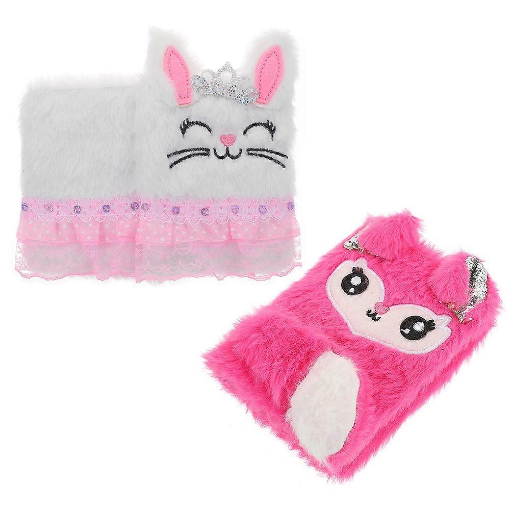 2pcs Fluffy Plush Notebook Cute Fox & Bunny Fuzzy Journals Soft Cover Portable Mini Pocket Diary for Writing Planning Gifts