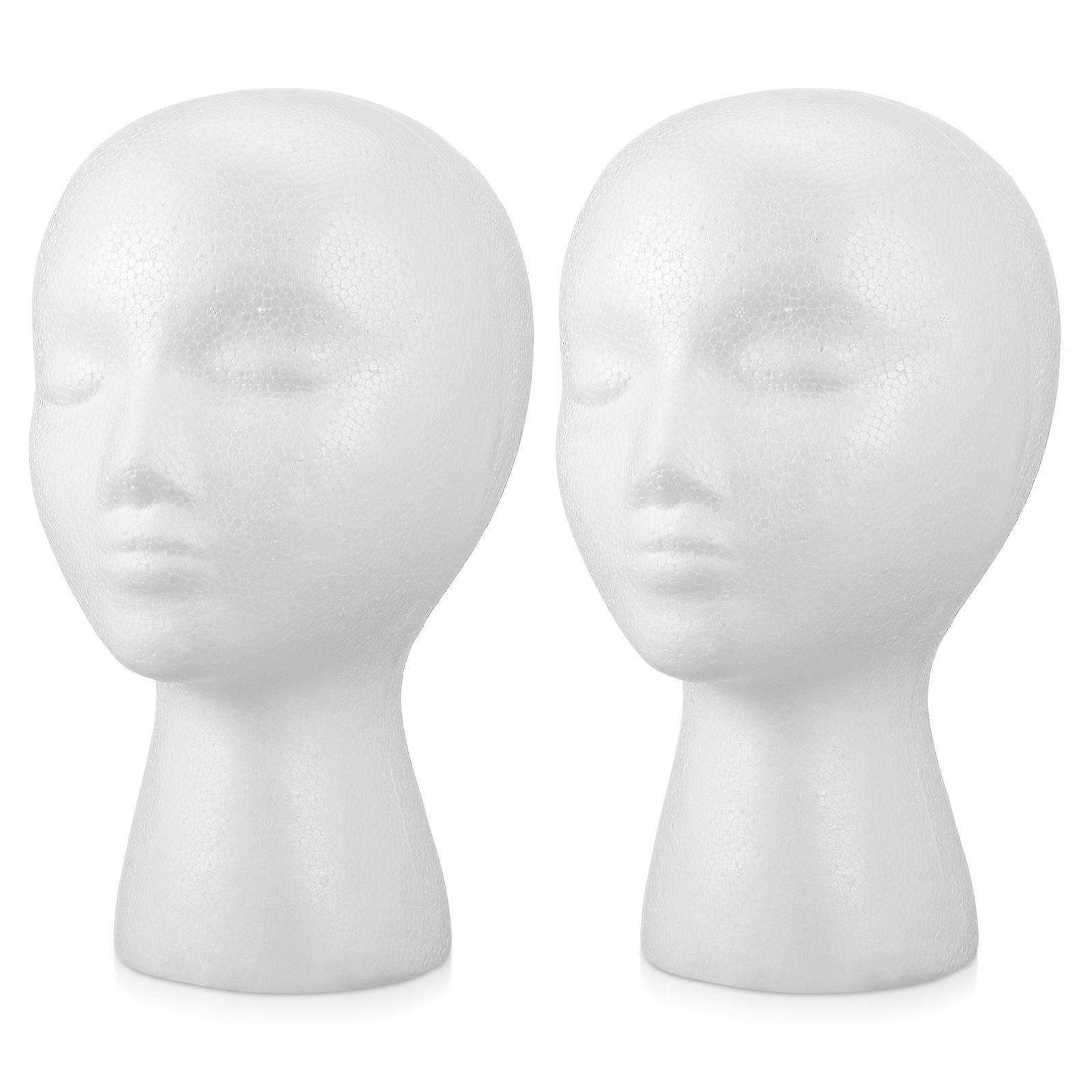2pcs Head Model Wig Hat Scarf Display Model Mannequin Stand for Store Shop Salon (White)