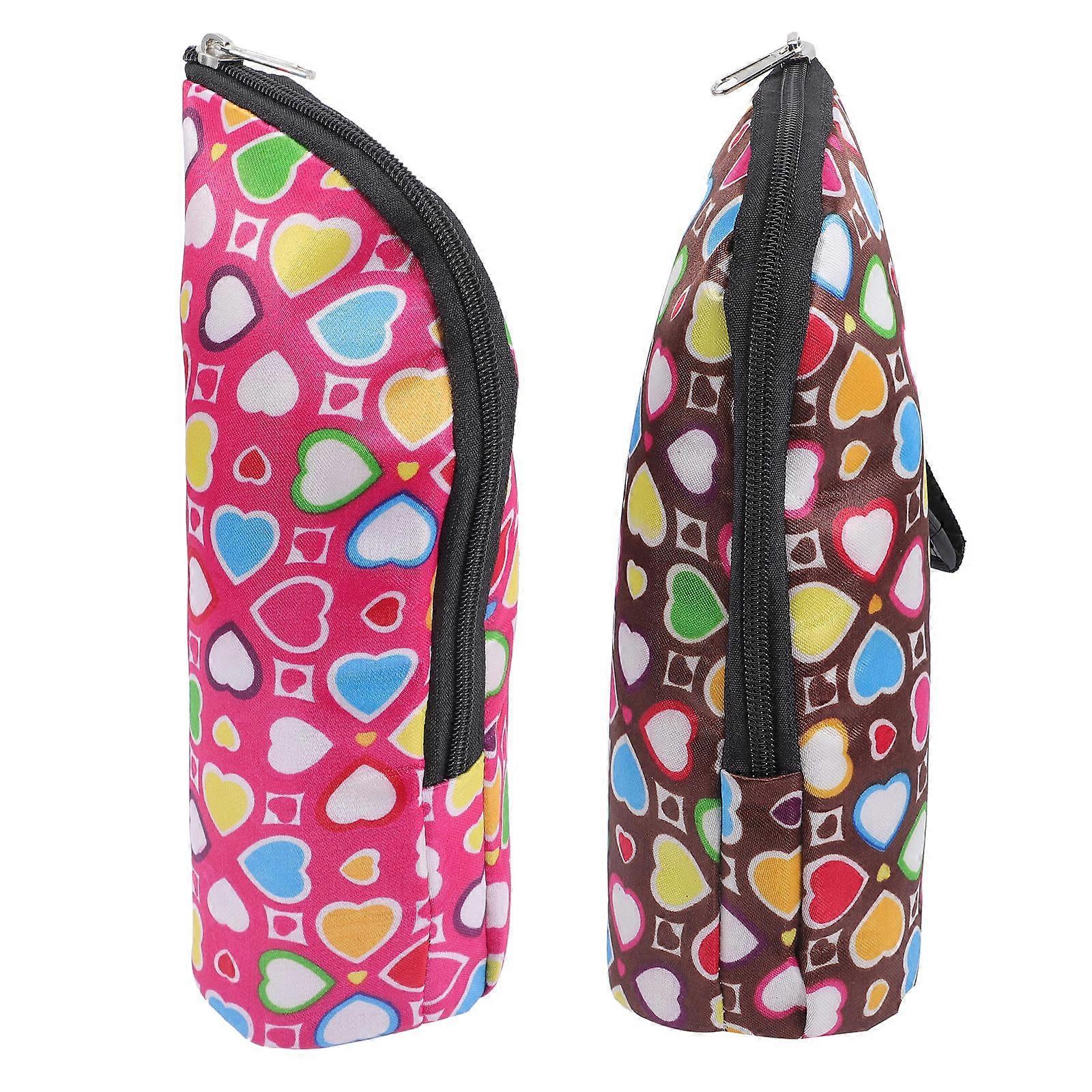 2pcs Insulated Bottle Pouch Durable Thermal Bottle Bag For Travel Premium Milk Bottle Holder Convenient Stroller Attachment For Breastfeeding Hearts