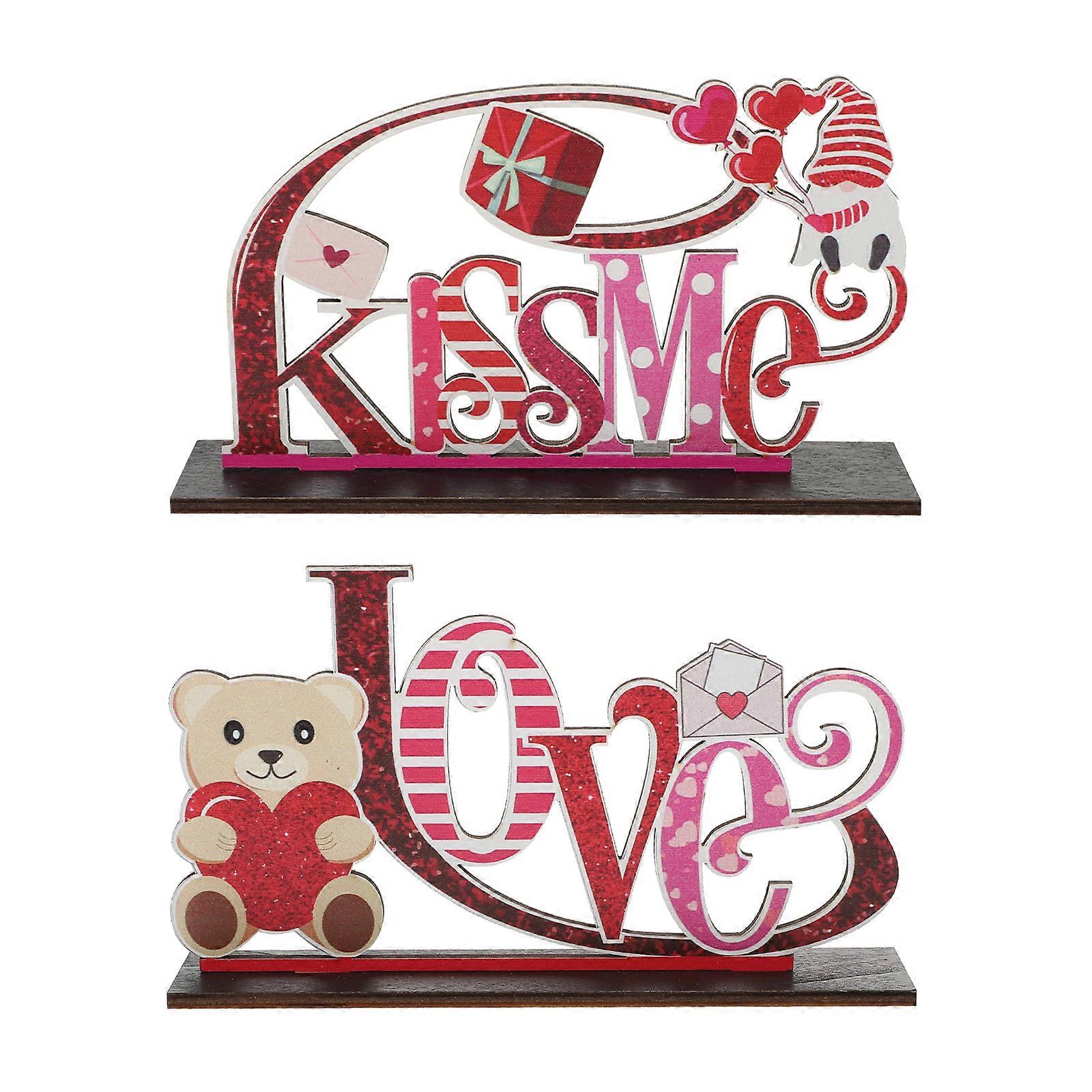 2Pcs Valentine Wooden Decorations Letter Sign Valentine's Day Scene Adornments Red