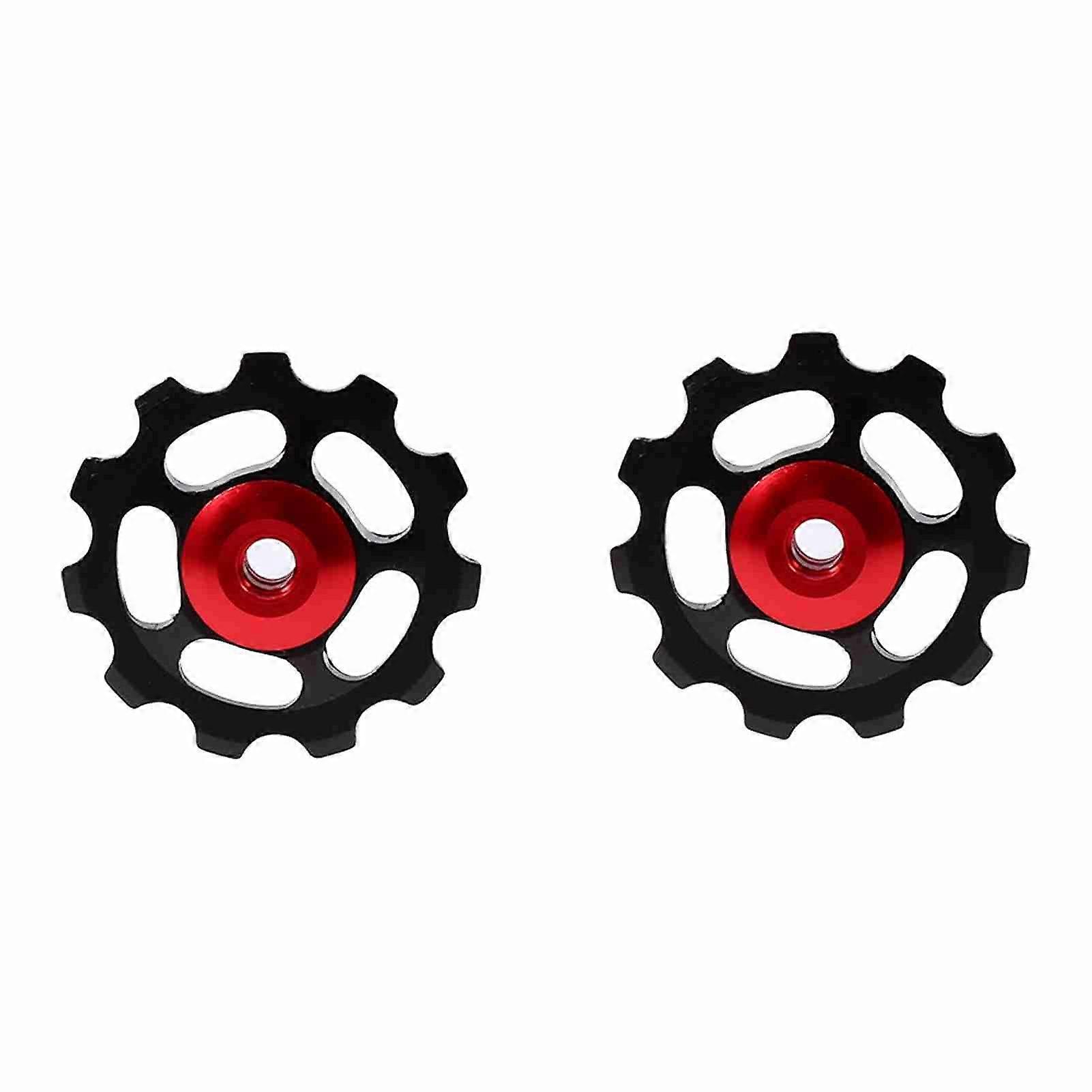 2pcs Aluminum Alloy 11T CNC Jockey Wheel Rear Derailleur Pulley For Bicycle Bike(black+red)