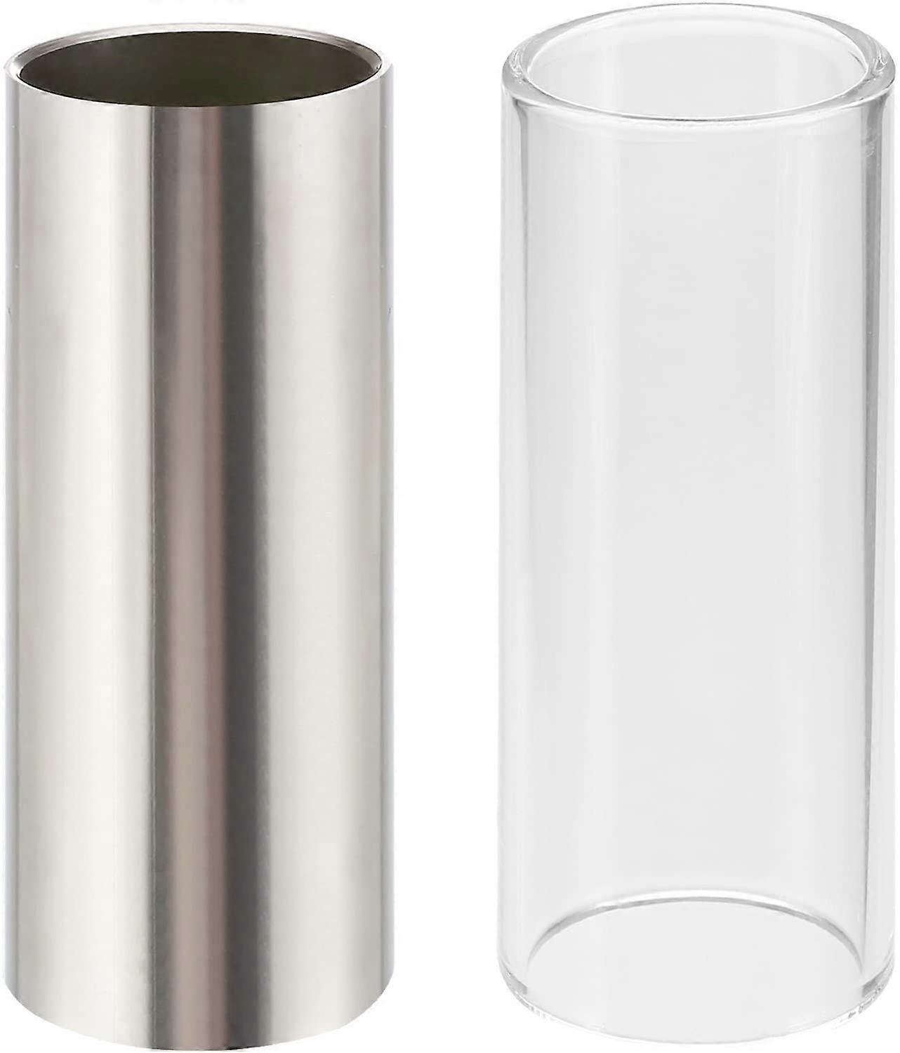 2 Pieces Glass Slide and Stainless Steel Slide in Box for Guitar, Bass, Medium (6 cm)