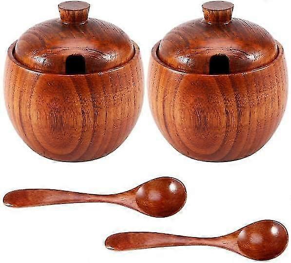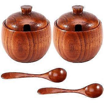 2 Pcs Wooden Salt Box, Salt Pot With Lid And Spoon, Round Salt Box, Salt Container, Rounded Corner Design, For Salt, Sugar, Tea, Coffee, Spices, Kitch