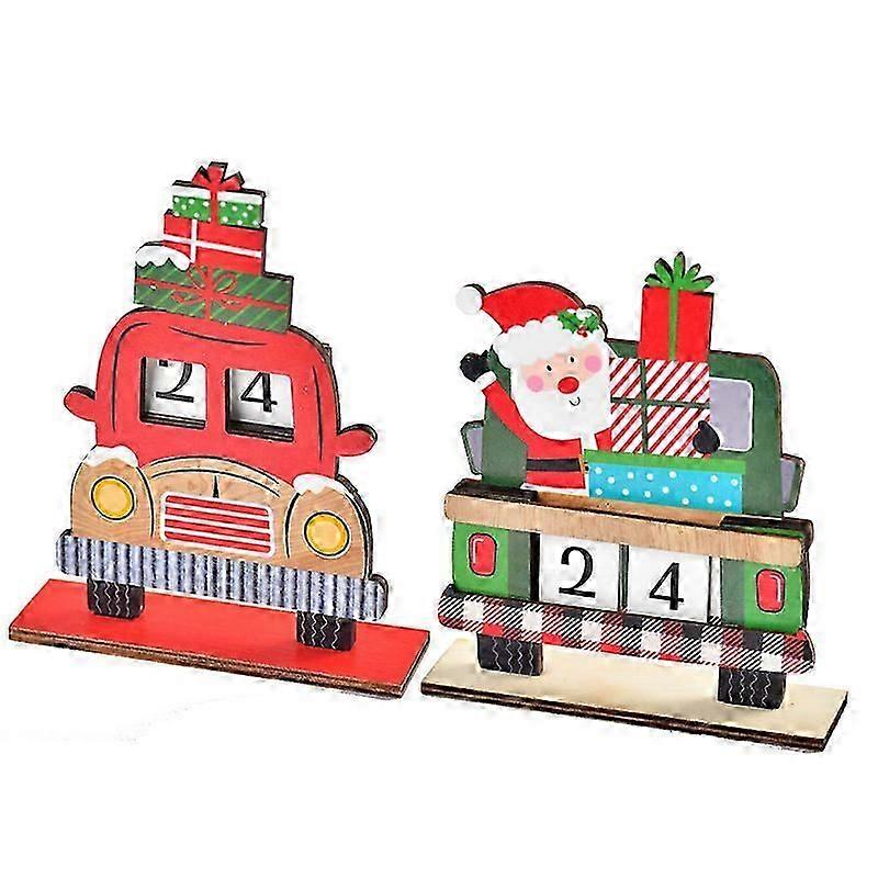 2pc Number Ornament for Advent Desk Blocks Christmas Decor Tabletop Train Days Gift