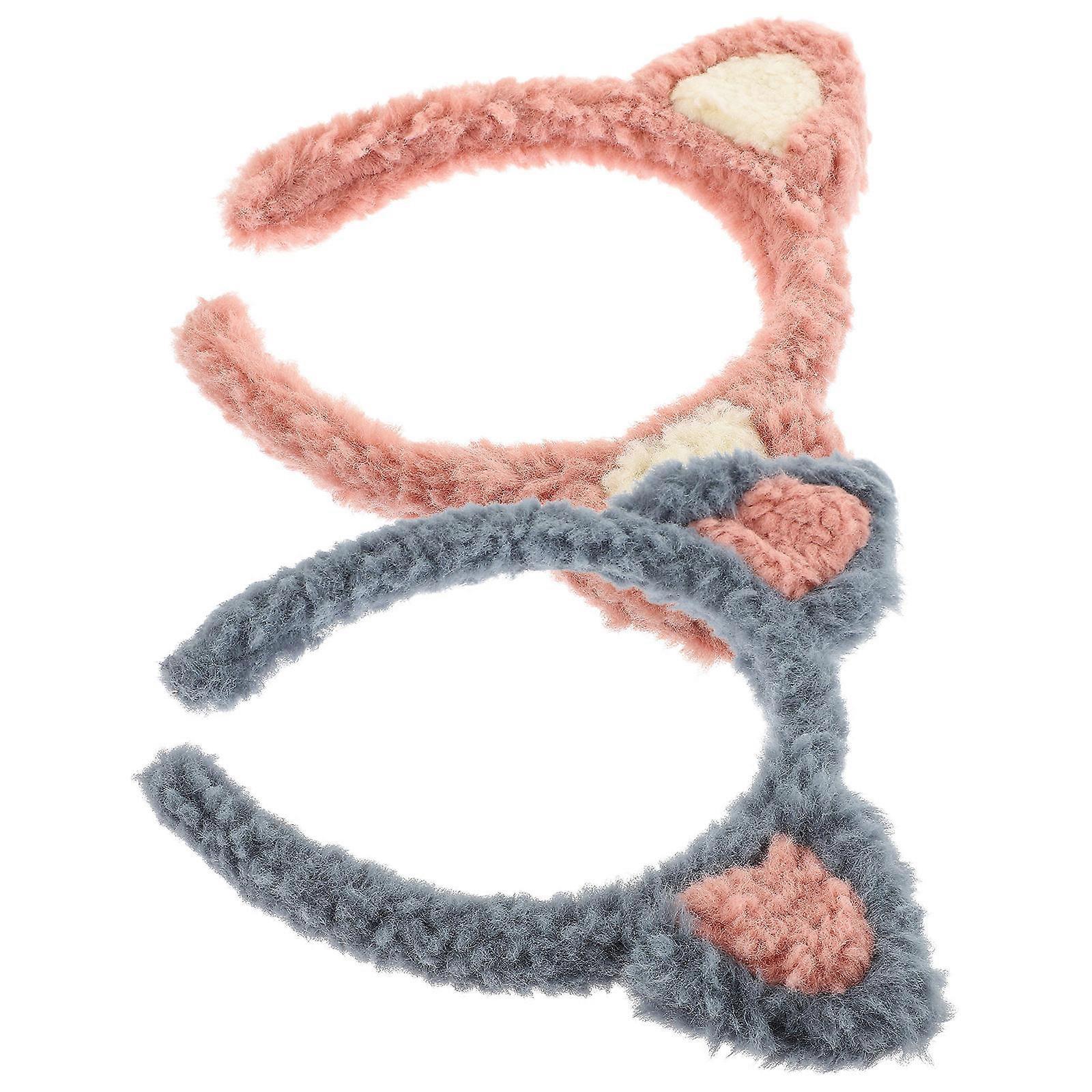 2pcs Cat Ear Headbands For Women Cute Makeup Skincare Face Washing Headbands Fuzzy Hair Accessories For Spa