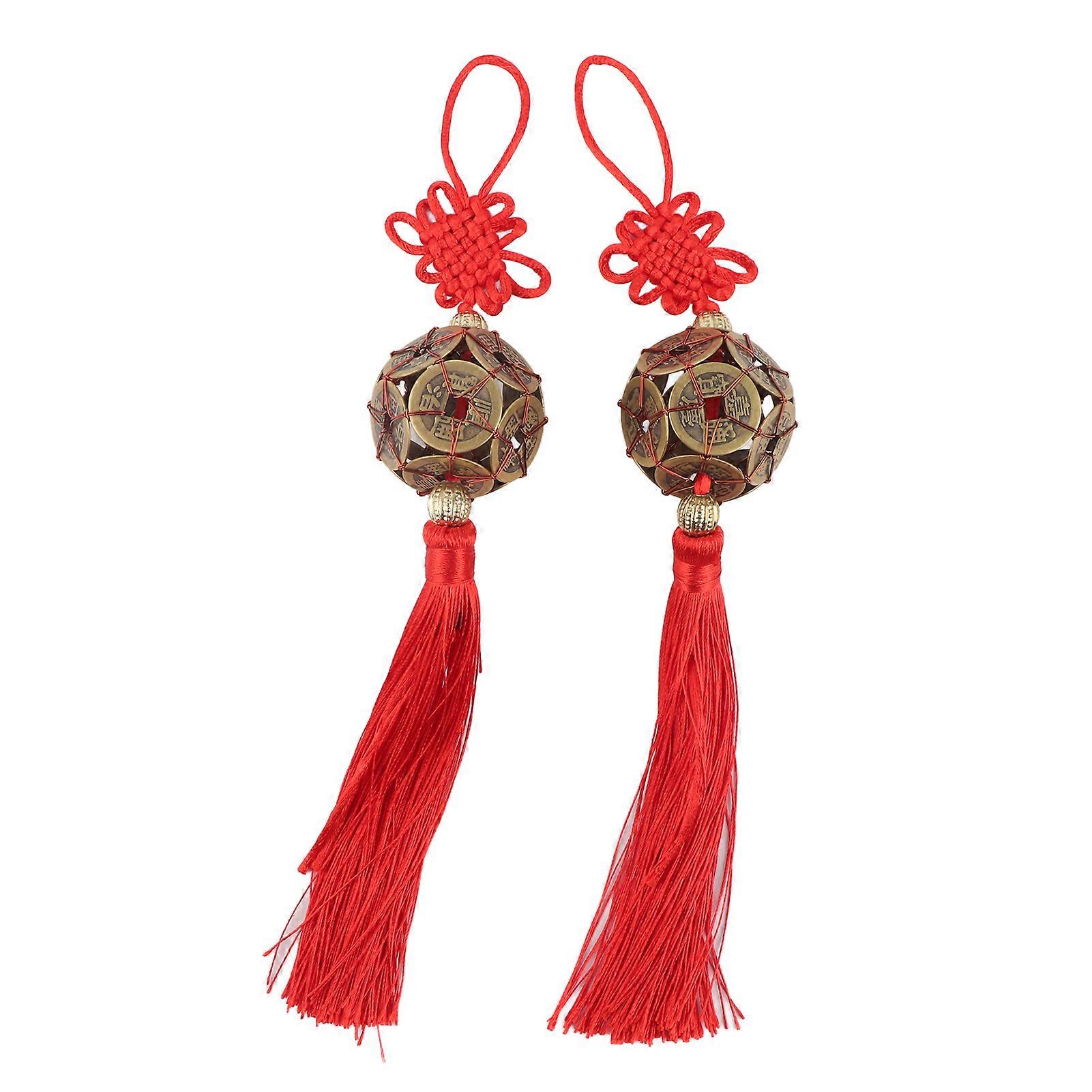 2Pcs Chinese Fortune Coins and Knot Pendant Ancient Coins Ornament Hanging for Car/Bag