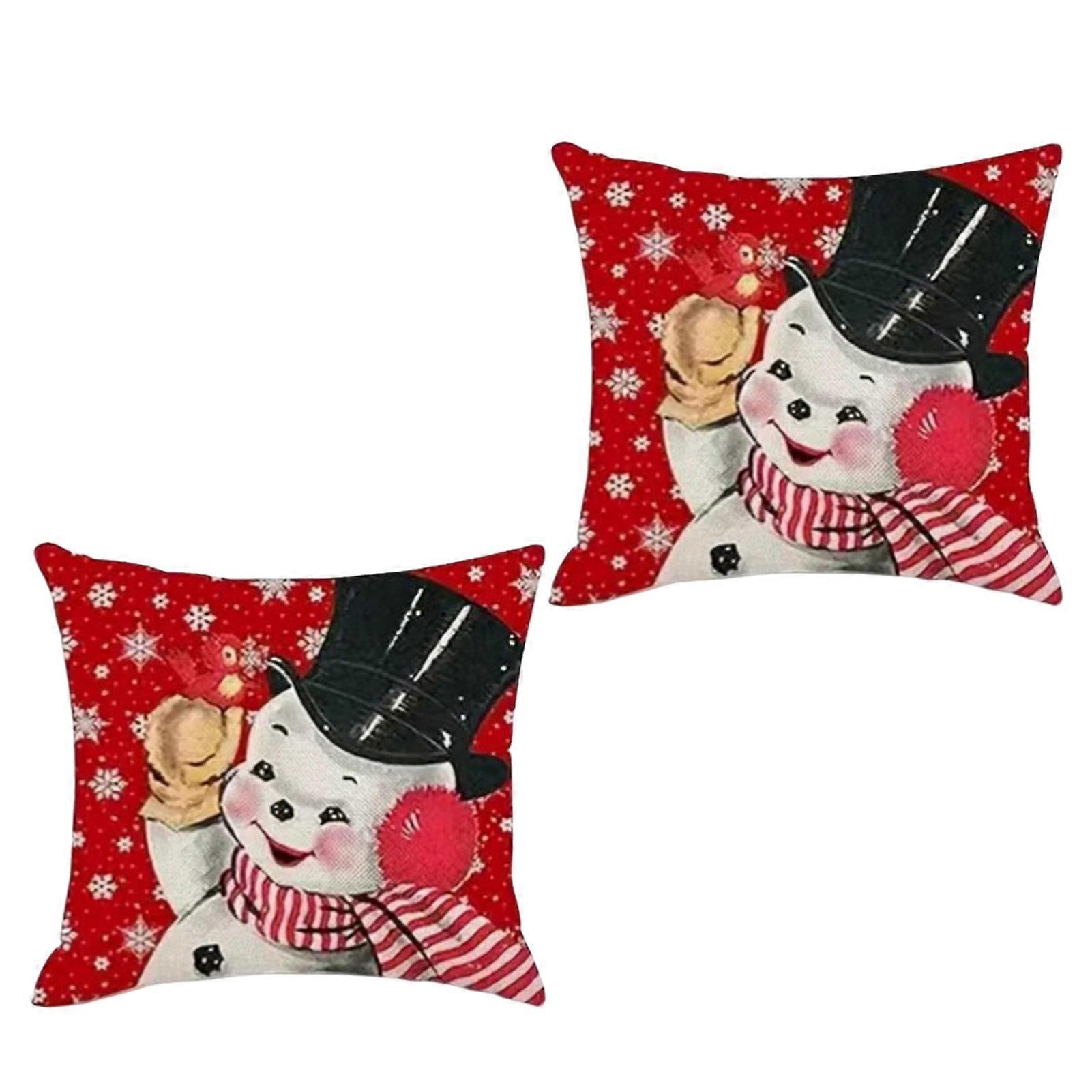 2 Pcs Christmas Throw Pillowcase Cartoon Snowman Pattern Colorful Print Square Shape Bedroom Living Room Sofa Decoration Pillowcase Pillow Cover