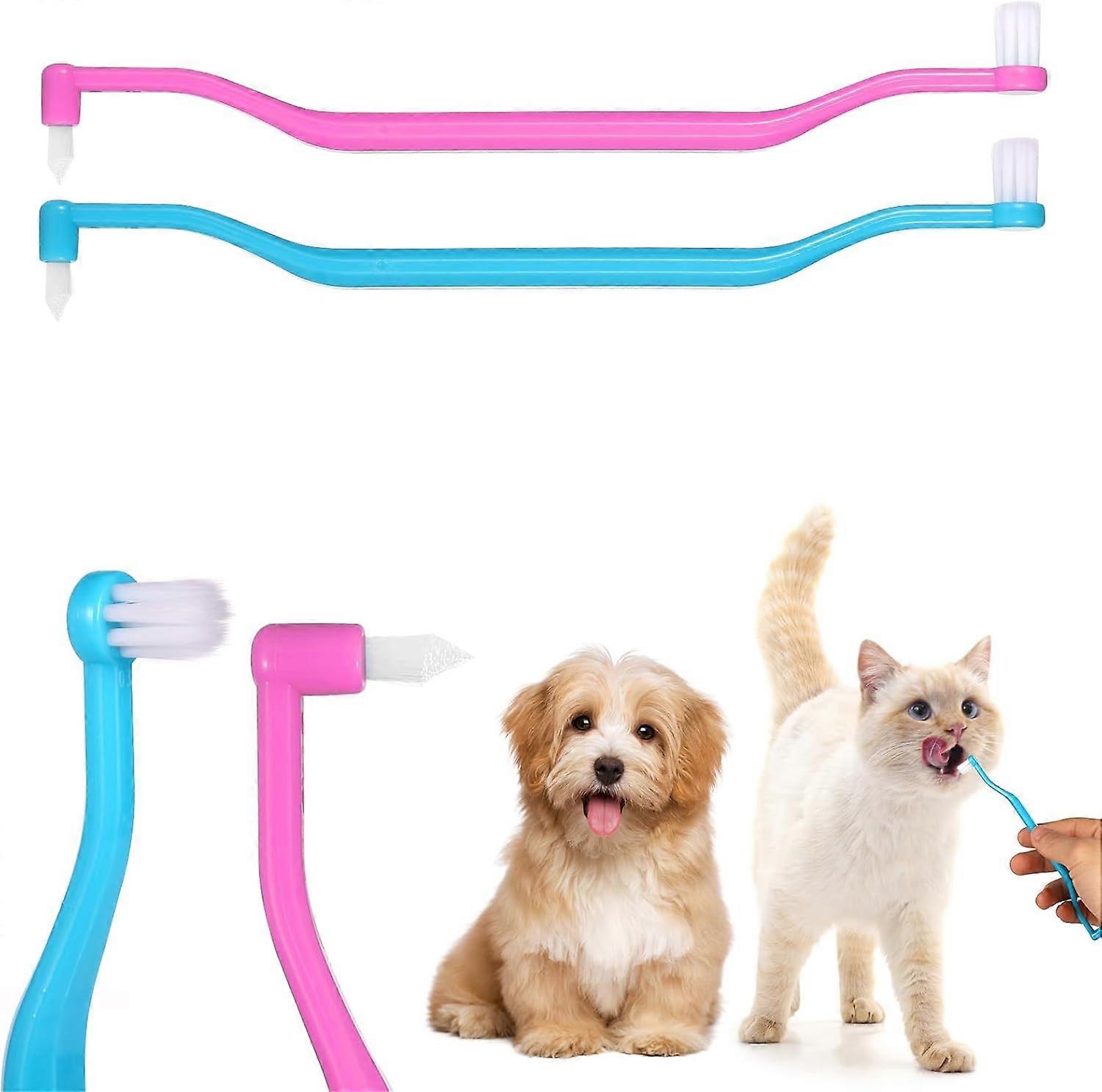 2pcs Dual Sided Cats & Dogs Toothbrushes, Kitten Puppy Toothbrush Pet Teeth Cleaning Brush with Micr Gift for family / friend
