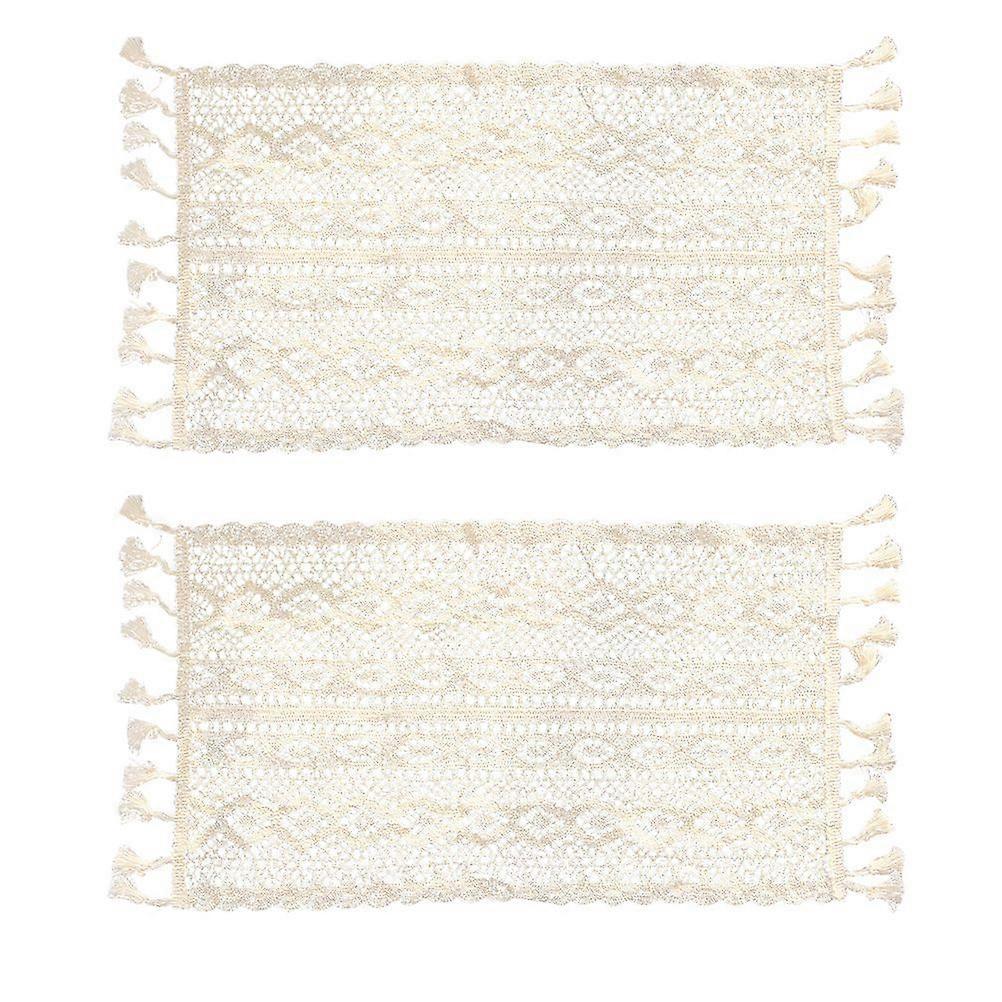 2Pcs French Lace Table Mat Ins Style Table Cover Western Food Place Mat (White)