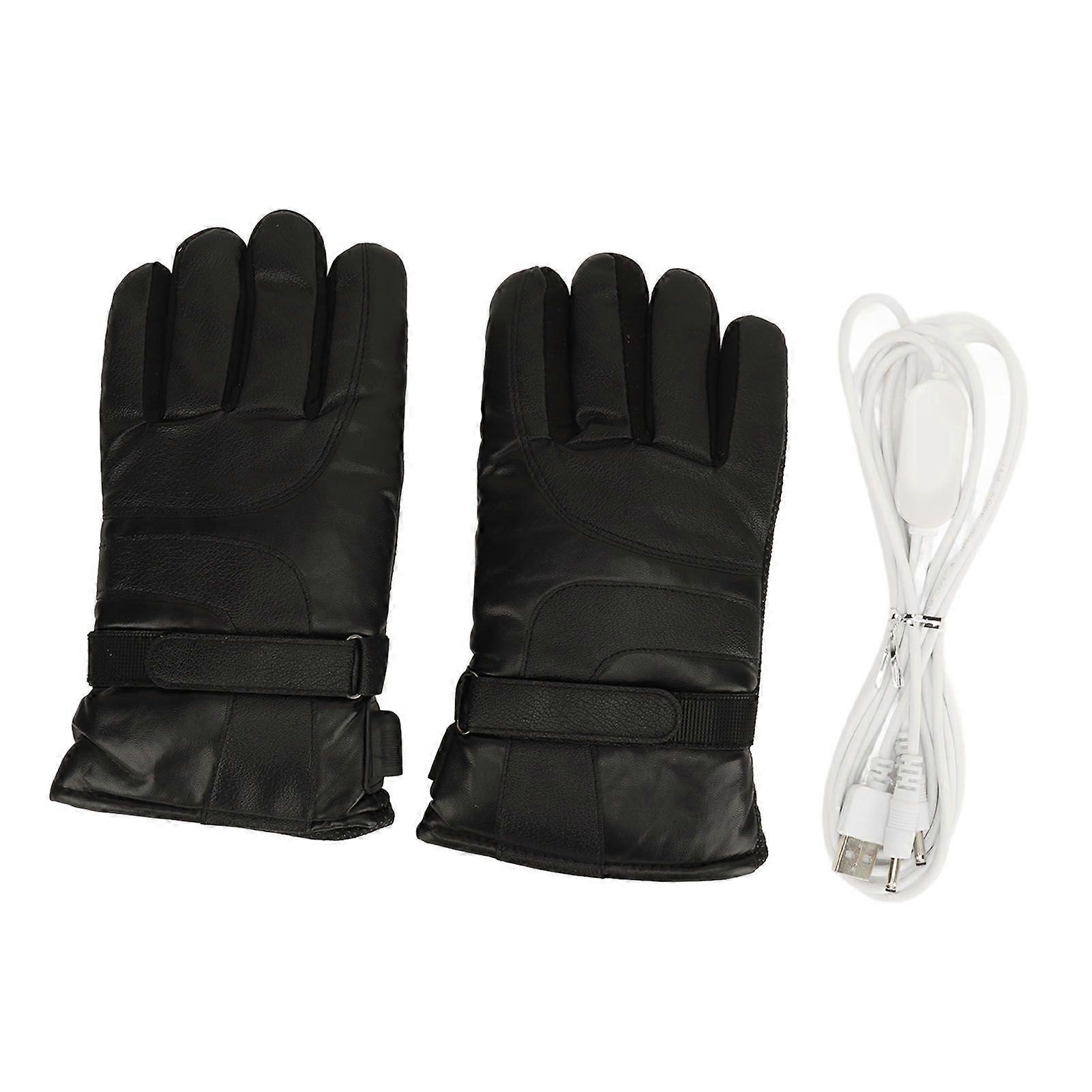 2pcs Heated Gloves USB 5V Waterproof PU Leather Breathable Adjustable Can Touch The Phone Screen Electric Heating Gloves for Riding Ski MotorcycleYMQX