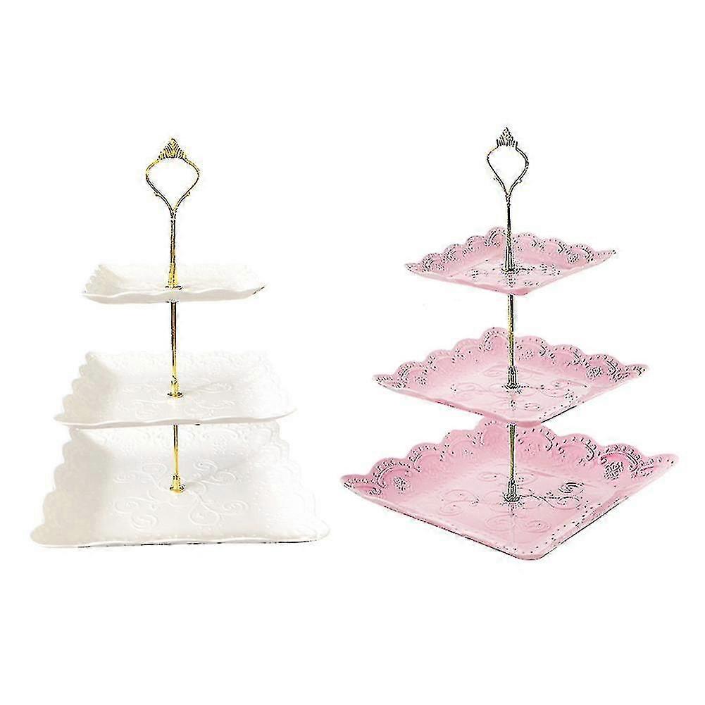 2 Pcs Square 3-tier White Cupcake Stand Dessert Plates Stand