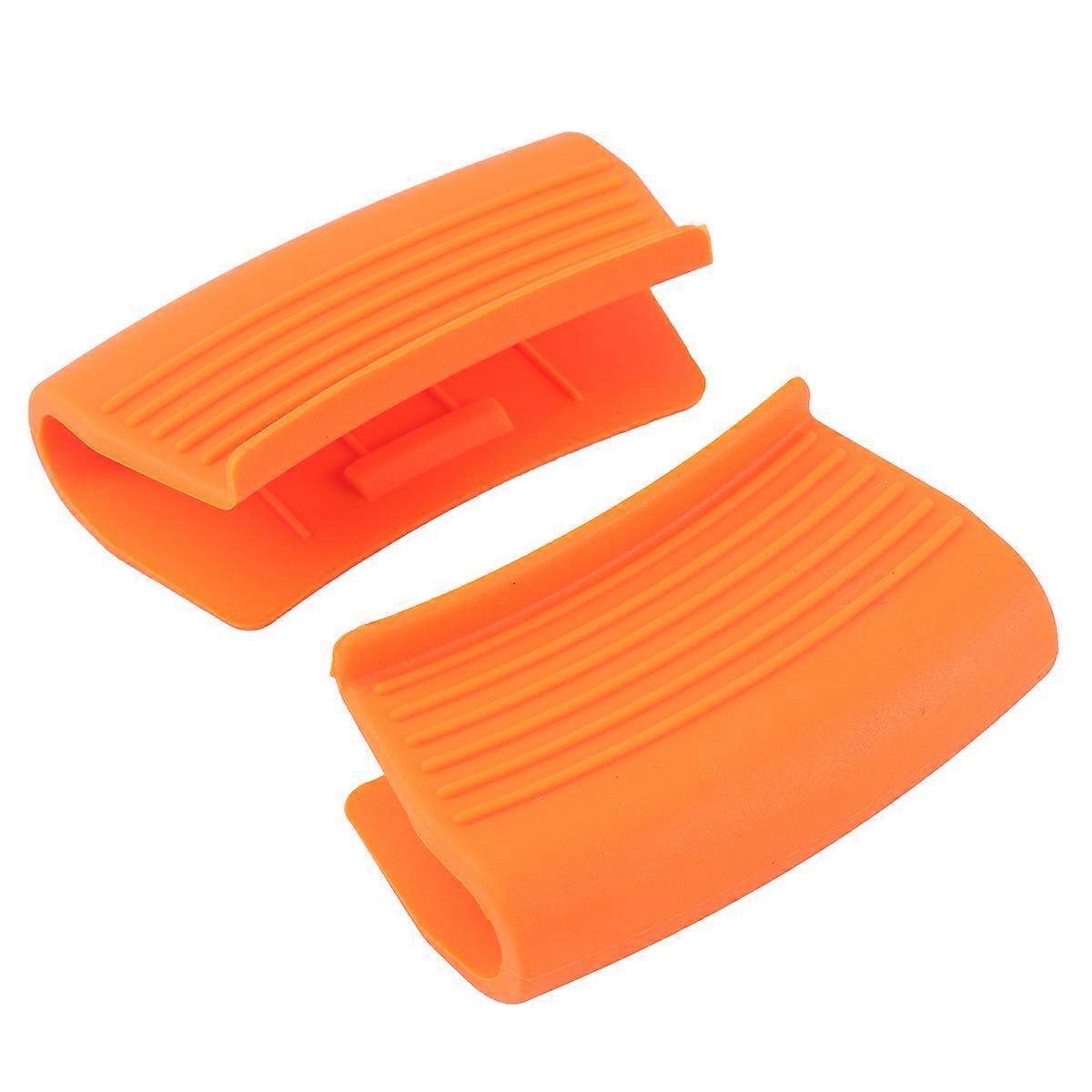 2pcs Anti-Scald Plate Clips Clamp Silicone Anti-slip Pot Handle Covers Heat Resistant Bowl Holder Gloves Kitchen Tools (Orange)