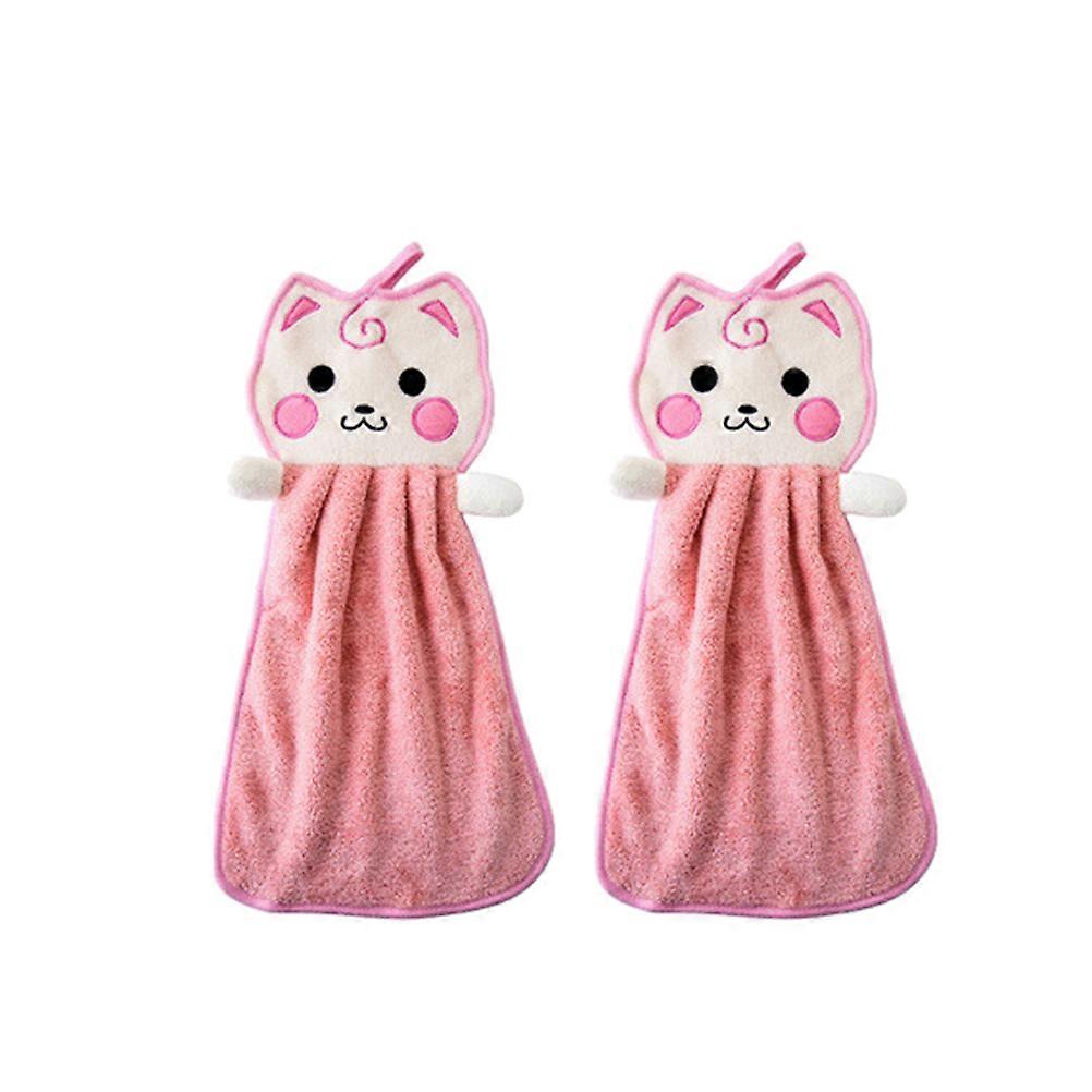 2pcs Hanging Cat Absorbent Towels Cartoon Cleaning Cloth Washing Dishcloth for Kitchen (Pink)