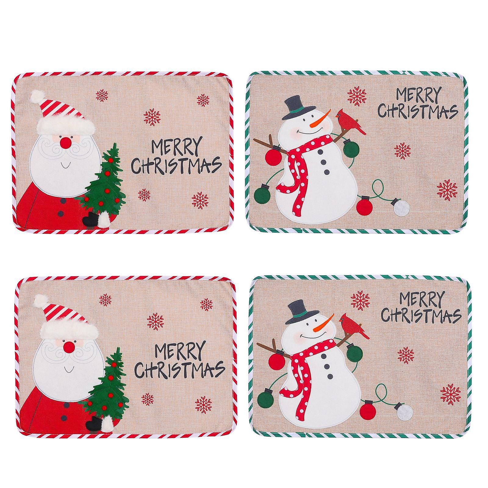 2Pcs Christmas Tablecloths Embroidery Old Man Snowman Placemat