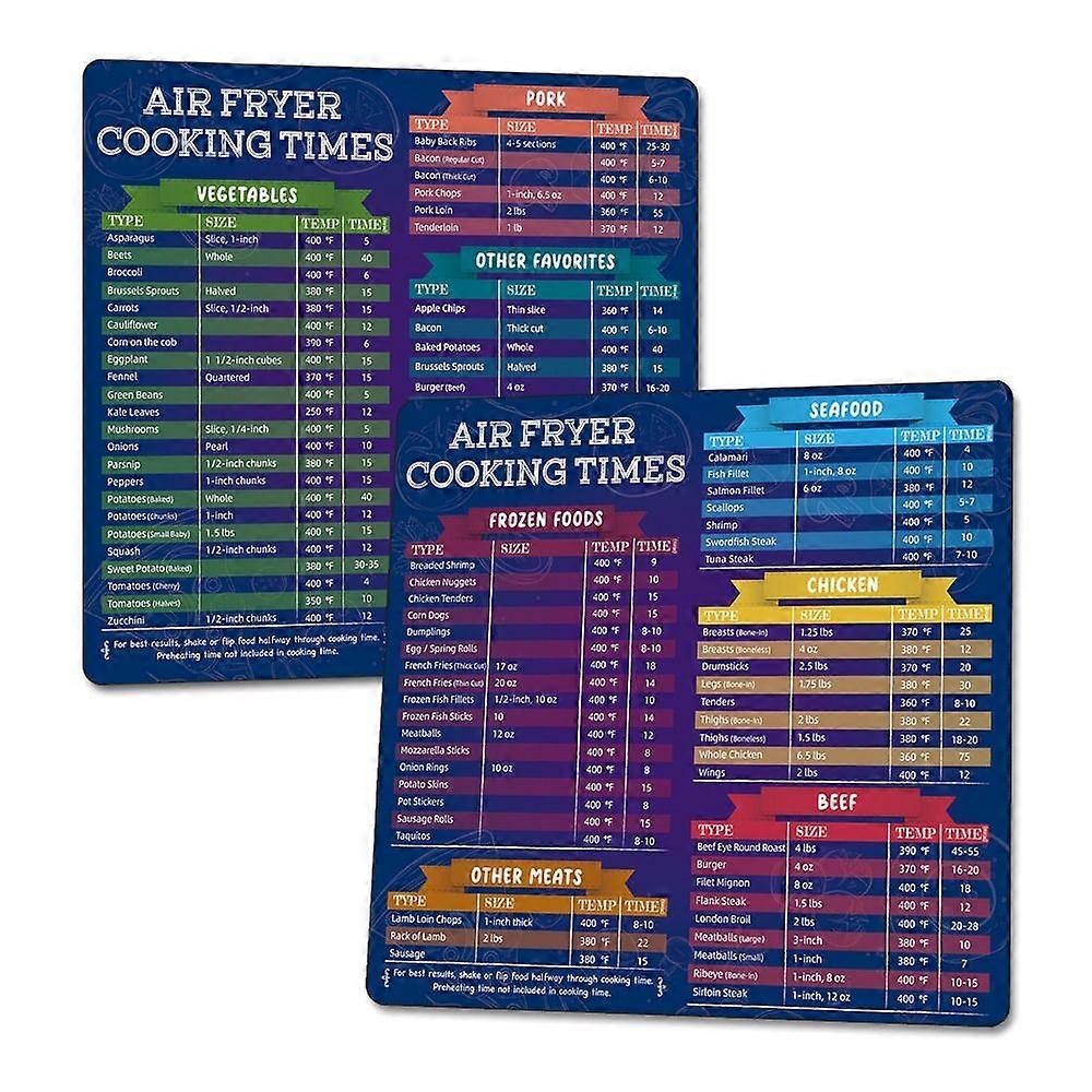 2pcs Air Fryer Sticker Magnetic Sticker Air Fryer Schedule - Cooking Times and Temperatures Guide