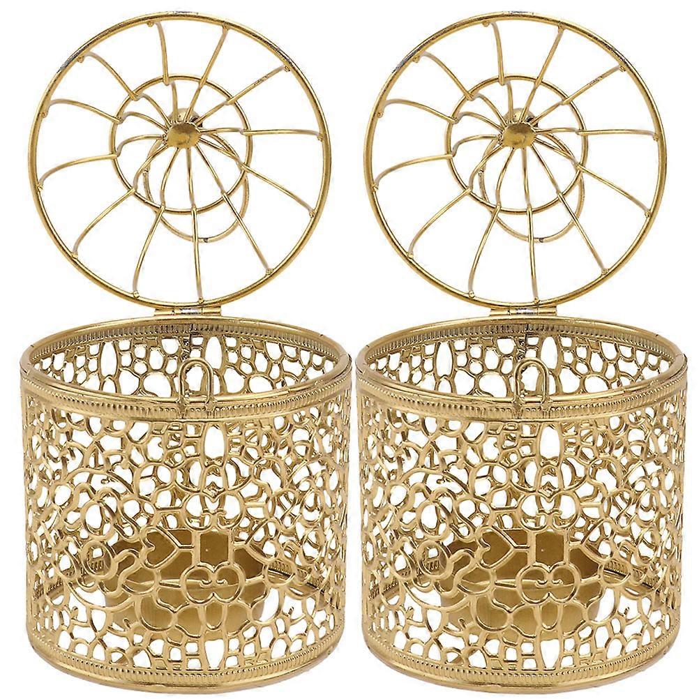 2Pcs Golden Iron Birdcage Candlestands for Cake Storage with Sturdy Hollow Design