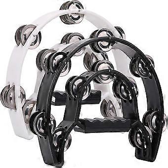 2pcs 10" Handheld Tambourine 20pcs Metal Jingle Percussion Drums (black+white)