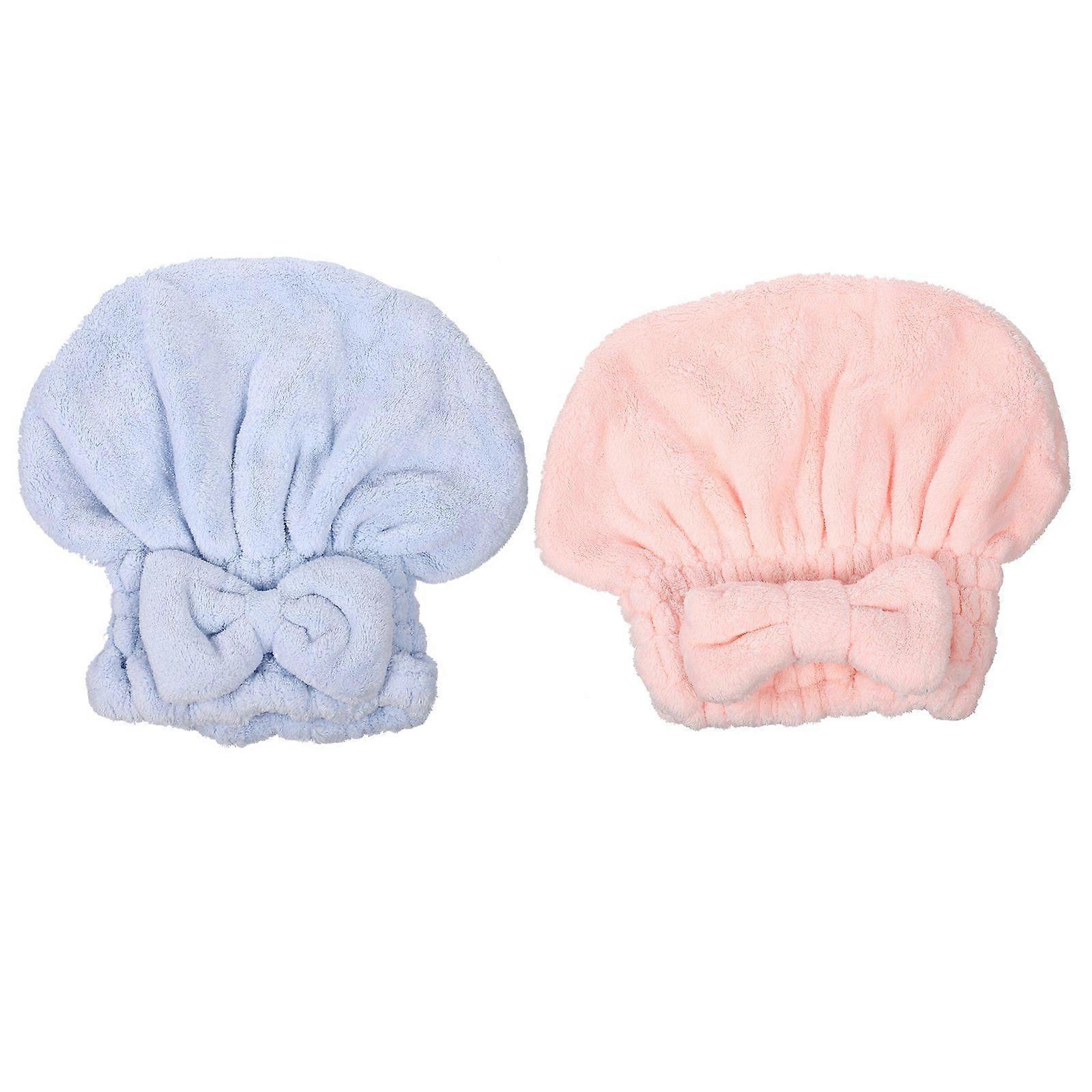 2Pcs Coral Fleece Hair-drying Hat Bowknot Bath Hair Towel Quick Drying Hair Towel Wrap